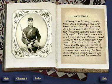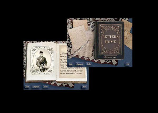 "His Name Was Lincoln," an interactive educational resource about the life of Abraham Lincoln, was produced by The Lighthouse Group. I created all graphics and illustrations, interface design and conducted photo research for three chapters of the project. This section of the project presented letters written by Civil War Soldiers and their photos.